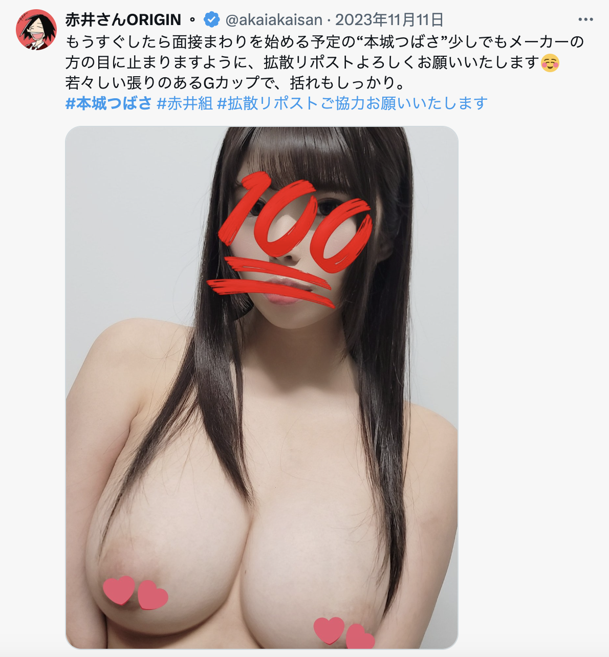 咦?我以为一样是黑皮大奶的「七海那美」也算是辣妹,不过算了,这种事片商说了算;然后你在X上搜寻本城つばさ(本城翼)就会发现经纪人「赤井」有把她出道的过程做了纪录:去年11月,她与事务所签约决定成为AV女优然后还替自己取了「本城つばさ(本城翼)」的艺名,那个时候还是黑发造型,后来,在面试过一轮后她得到了Moodyz的专属合约,造型也开始改变,然后就像大家今天看到了,她成为了金发黑皮H罩杯的辣妹: