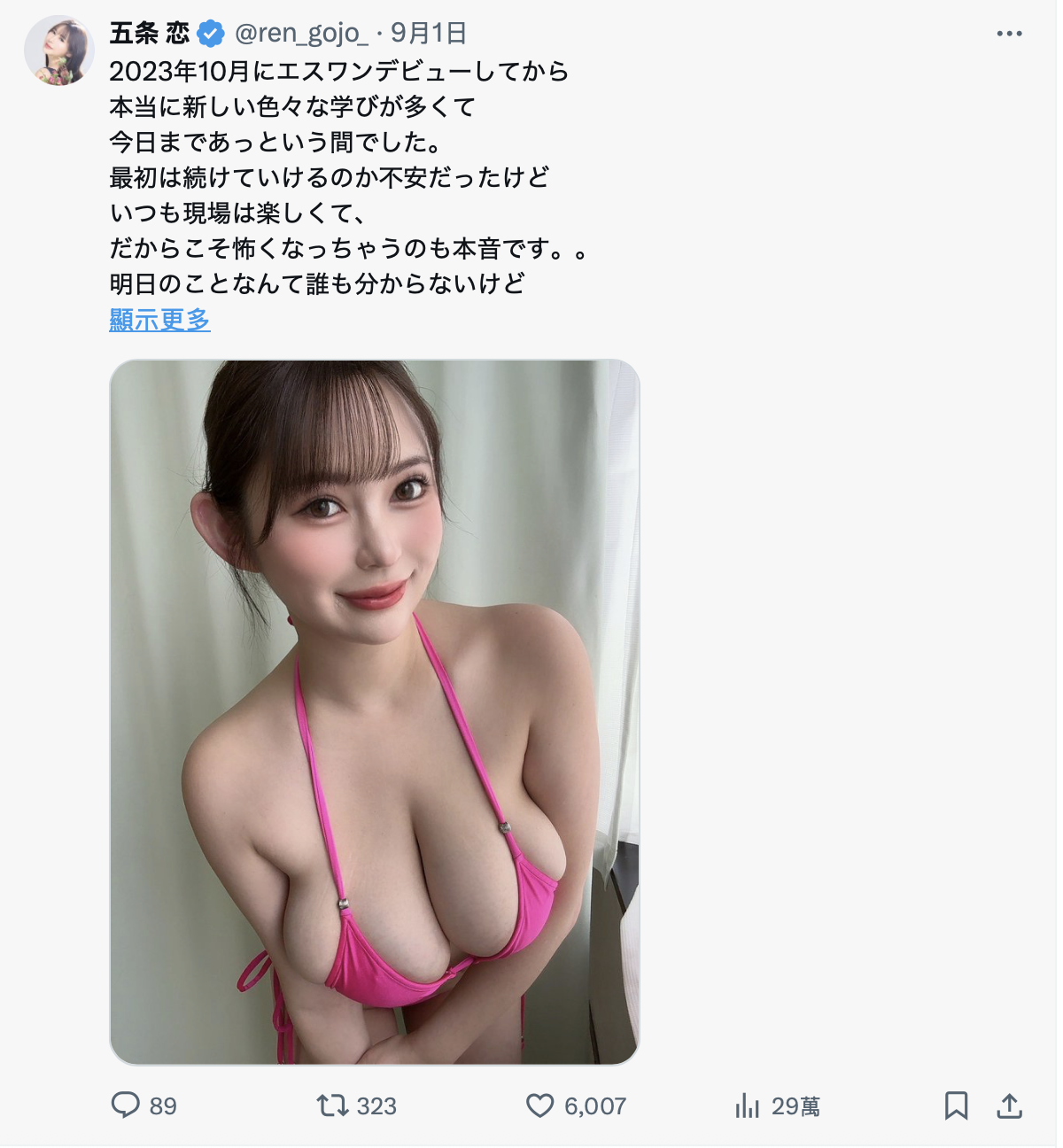 不过还好,至少她还是拿到专属合约,用的是Moodyz一般专属女优的「MIDA」番号;对此五条恋在社群(https://x.com/ren_gojo_)的说法是自从出道以来一直都觉得时间过得很快,虽然一开始很担心自己做不来,但每次拍片的时候都很开心,但也就因为太开心了,反而很害怕这样的日子会突然就结束,因为五条恋明白,明天的事谁也无法预测,今天的她只能拼命努力: