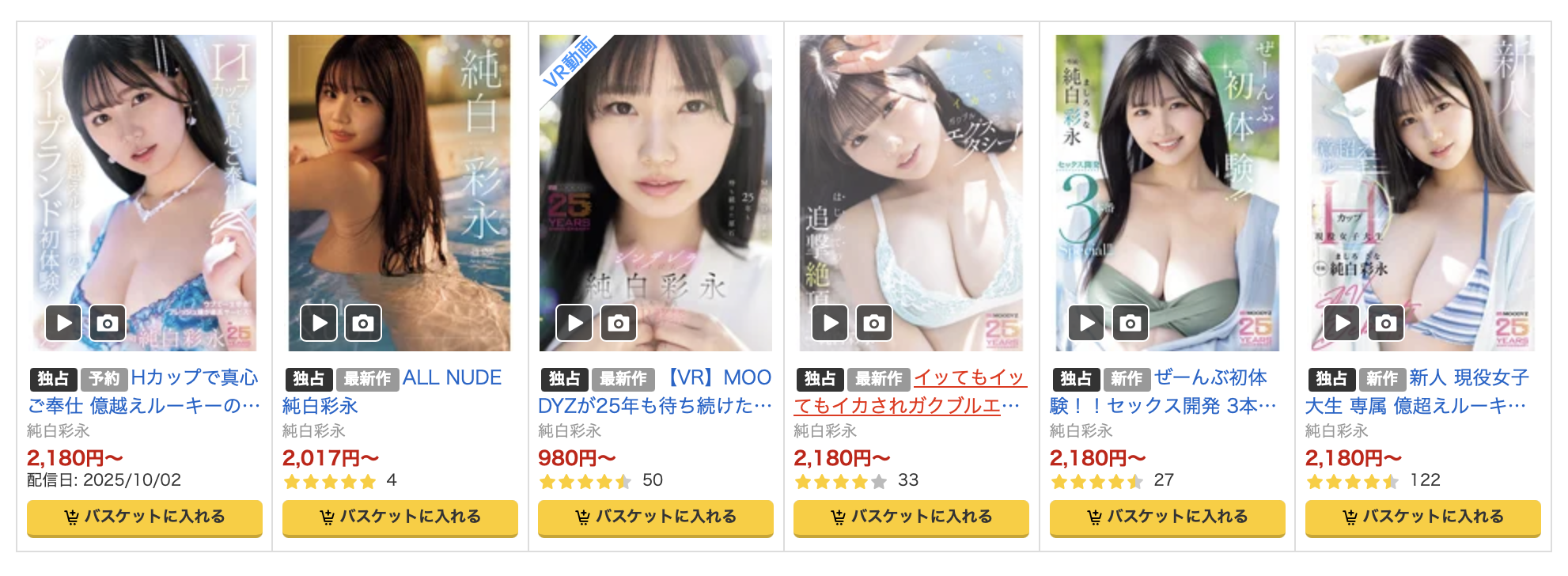 三澄宁々才刚出道,先不谈了,我们来看纯白彩永(Moodyz)和新川空(SOD STAR)前面几支作品的操作ー