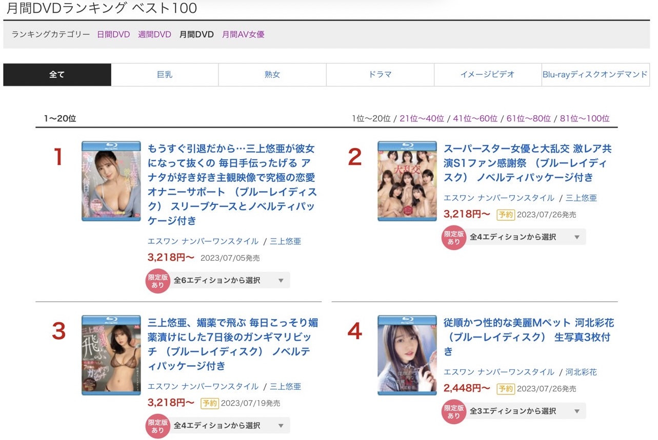 到8月前可能都是这样子,对三上悠亜没感觉无妨、觉得看她的片子没Fu也无所谓,但从引退的企划和销售的气势就知道她真的是天下第一人,完全不用怀疑〜