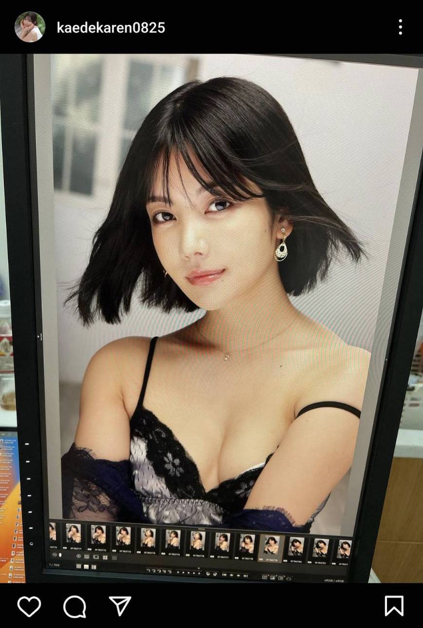 当然很多人问她什么时候会有新片,对此枫カレン(枫花恋)表示还不能说,不过前几天那张照片(就是IG那篇定装照吧,在下有写一篇出来点击连结)就是答案,另外,星期一的时候她也有去拍片: