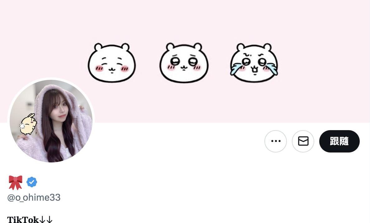 是的,她已经有5.3万个追踪,很多出道一两年的新人还没那么厉害呢;但她的Tikotok更猛(https://www.tiktok.com/@o._.ohime),目前有超过6.5万人追踪ー至于她是谁、大家为什么期待她下海呢?这可不是大家看到一个女生就胡乱许愿希望她去拍A片,而是她自己在Tiktok自我介绍栏告诉大家她就是个「25日后にAV女优になる人」(25天后要出道当AV女优的人):