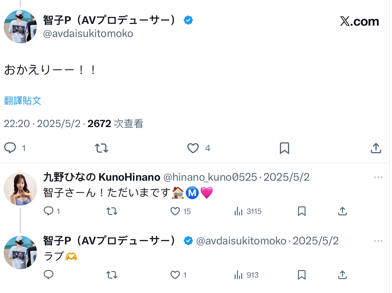 然后她成了TAE的四大代言人之一,活动结束后的5月,她在自己的X(https://x.com/hinano_kuno0525)宣布重返摄影棚展开久违的拍片,而且从制作人「智子P」前来打招呼来看她的身分没变,还是片商Moodyz的专属女优⋯