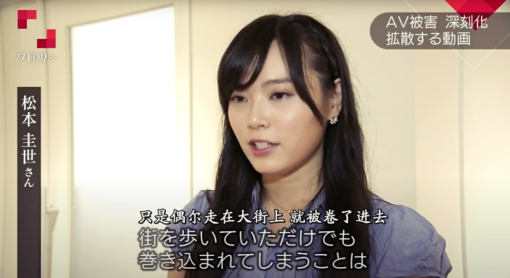 2016年前知名主播松本圭世现身说法,自己就是被以「拍摄谈话性节目」的名目欺骗,没想到在实际拍摄现场,在剧组多名男子的包围与压力「说服」之下,半推半就拍了一段舔冰棒的软调色情影片。