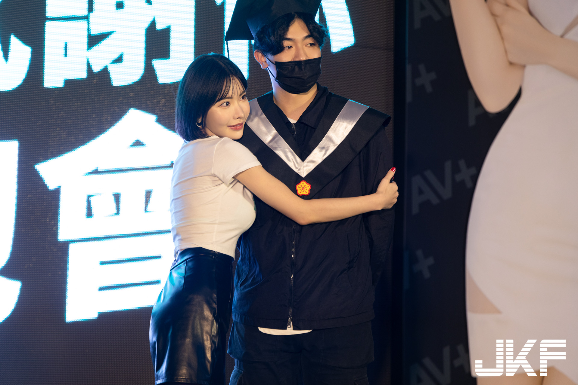 我往舞台上看了一下,确实,一个个子高挑的女粉丝正在舞台上和深田えいみ(深田咏美)爱的抱抱,经纪人在那边发出狼嚎,和我说:「台湾的女孩真不错⋯」