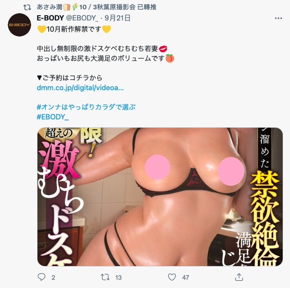 這樣的女人絕對不缺炮打,所以在完成與SOD短暫的專屬合約後,她很興奮地宣布「接下來會有很多作品上架喔」,我是完全不懷疑她的戰鬥力,也相信以她事務所的能力接下來會有很多片商願意給這位大隻佬屠殺男優的機會,距離2022年還有3個月的時間,希望我們不會聽到有男優馬上風的消息〜 作品名:30日間ザーメン溜めた禁欲絶倫オヤジを満足させる中出し無制限!乳尻100cm超えの激むちドスケベ若妻 じゅんさん26歳 品 番:EYAN-178 發行日:2021/10/19 女優名:あさみ 潤(朝美 潤,Asami-Jun) 事務所:Mine’s 身高/罩杯:168公分/H罩杯 |